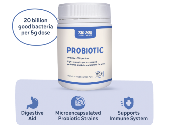 Our natural, high-strength probiotic blend, with 20 billion good bacteria and 7 host-specific strains, is formulated to assist your dog or cat's gut health and support a properly functioning immune system.