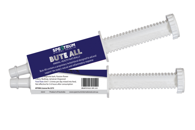 Bute All contains a proprietary herbal blend designed to aid and support the body’s natural anti-inflammatory response. Can be administered before and after strenuous exercise.