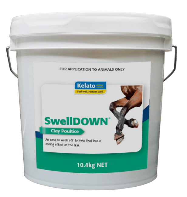 SwellDOWN’s special mixture of montmorillonite clay and unique ingredients has a cooling effect on the skin. The clay, used as a poultice, is a fast and effective tightener around knees, fetlocks, and tendons.