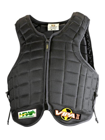 The VIPA II Body Protector has been certified by Harness Racing Australia (HRA) and features the HRA rubber logo on the right hand side.
